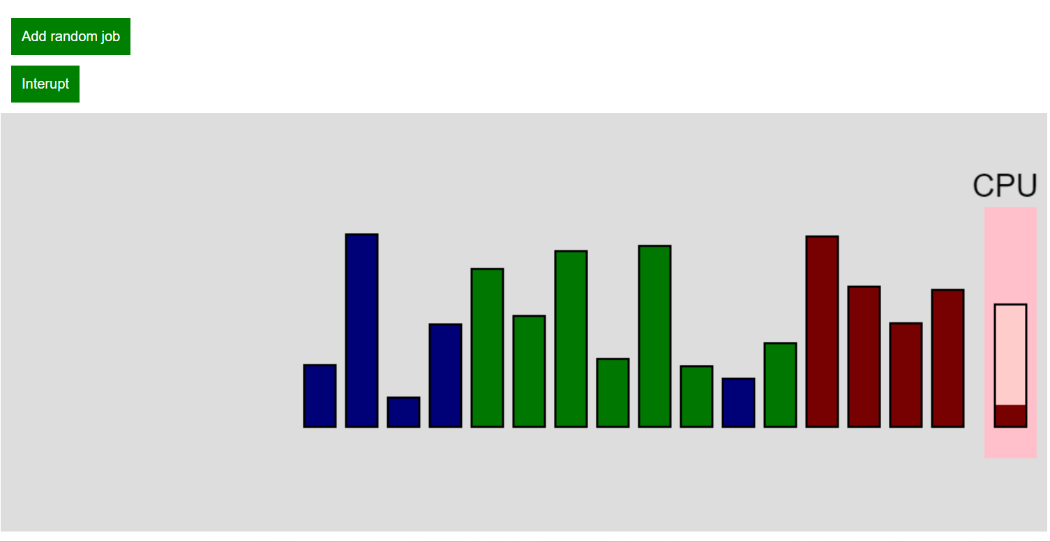Interupts are RED, and important so are placed at the beginning of the job/task queue.